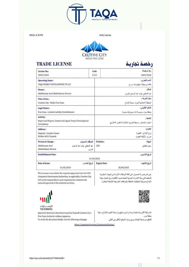 development. With over 16 years of proven expertise, we provide strategic project development and commercial agency services across the Middle East, Asia, Europe, and North America.